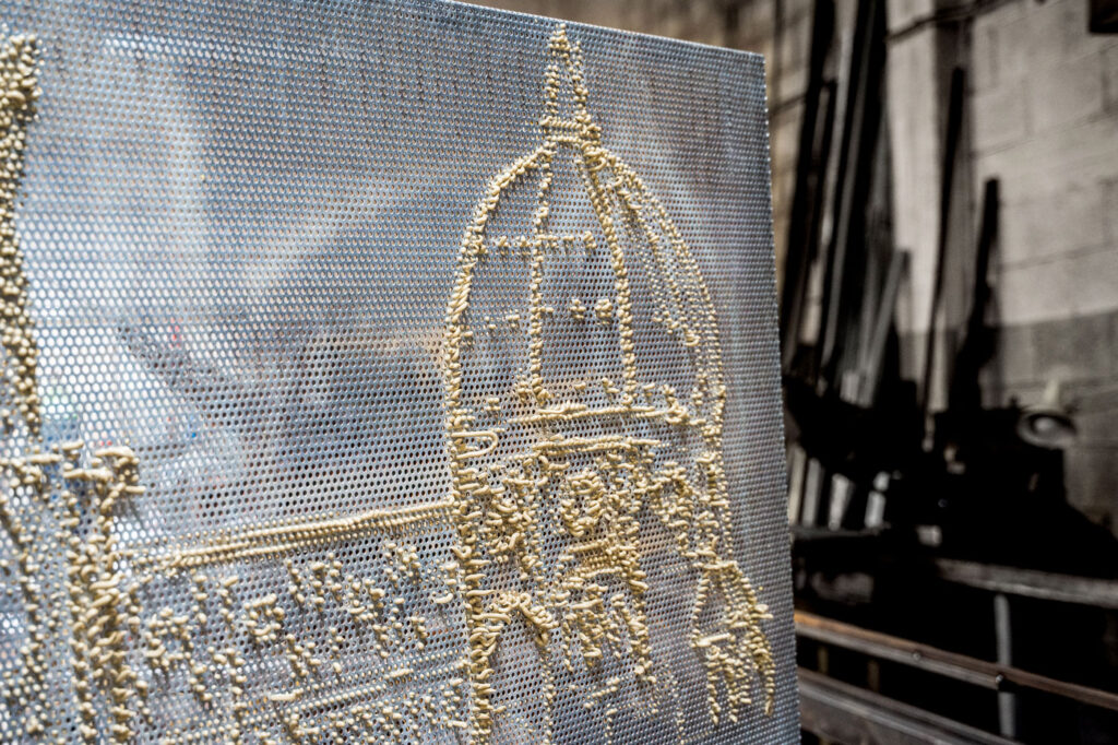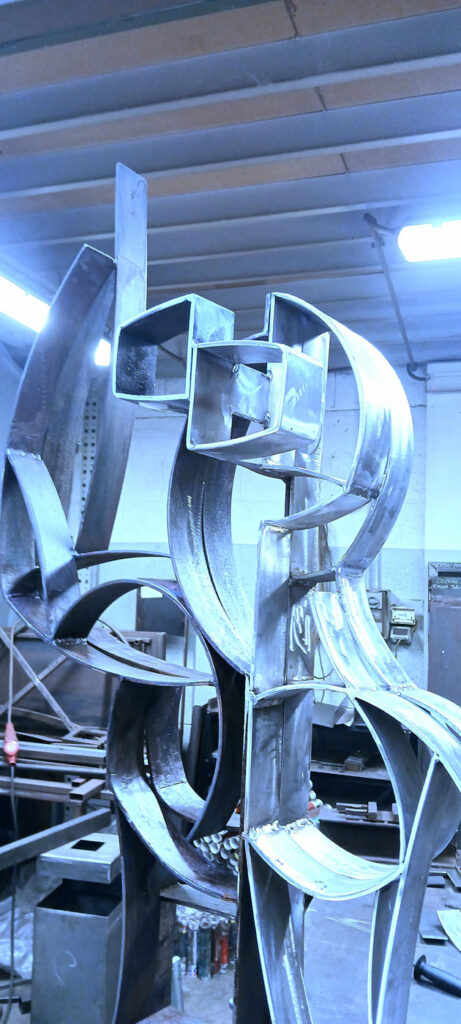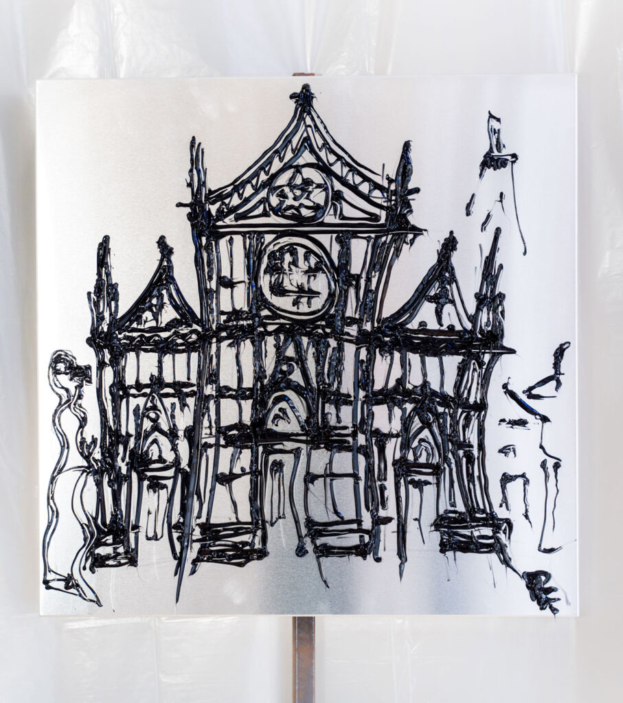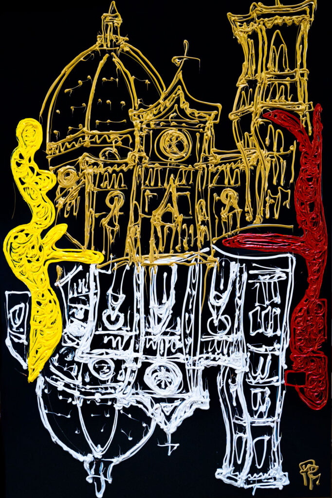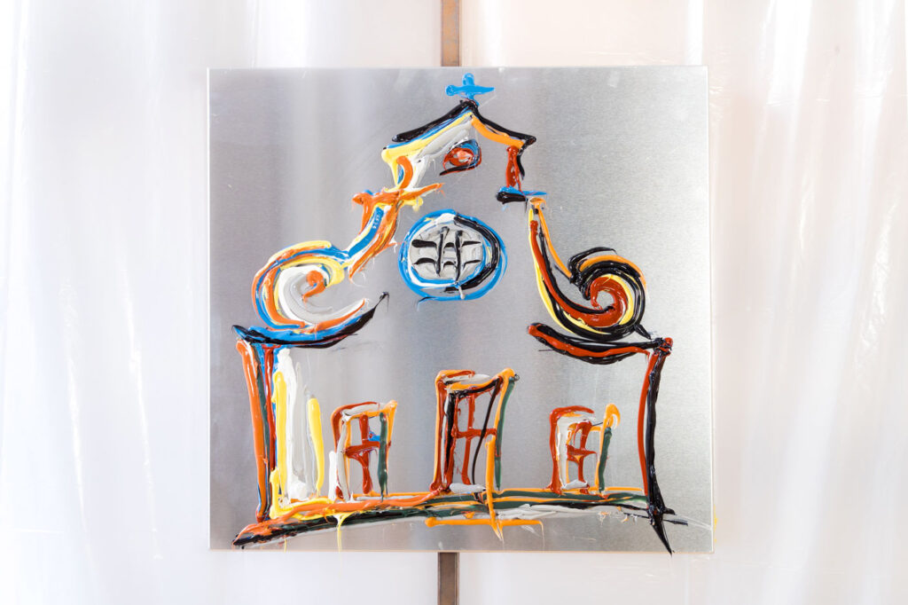 “Più forte” è un quadro tridimensionale di grandi dimensioni (120×120 cm) che esprime energia e vitalità attraverso il silicone modellato su acciaio zincato. Le superfici in rilievo e le colature materiche evocano la crescita e la resistenza, ma soprattutto la capacità della natura di rigenerarsi e superare anche le interazioni più negative e invasive dell’essere umano.