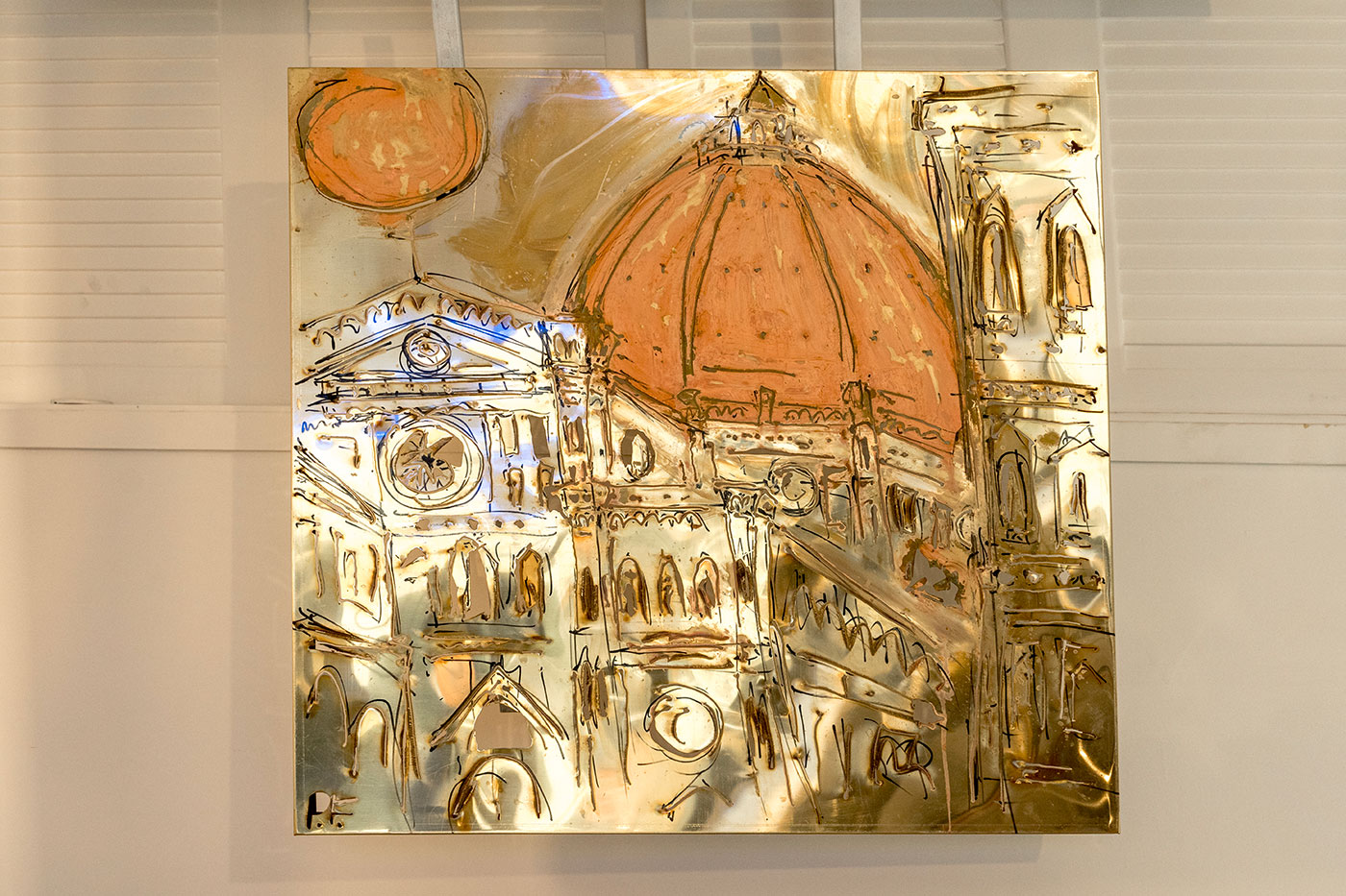 Opera contemporanea che reinterpreta Firenze attraverso la luce e la materia dell’ottone, in dialogo con il tema dello spazio.